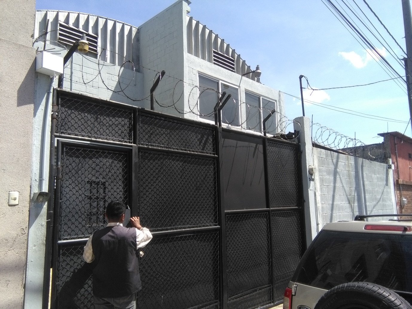 - portón de ingreso para camiones al área de carga y descarga