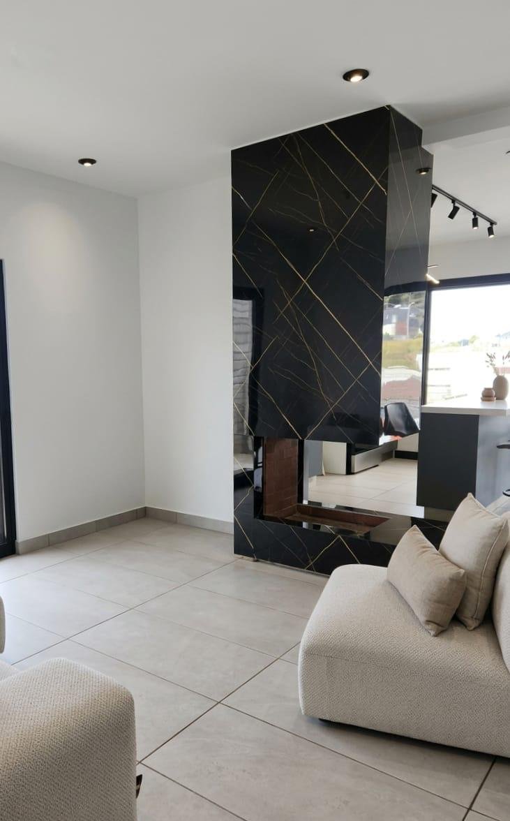 - Cocina con isla, top de granito y gabinetes modernos.